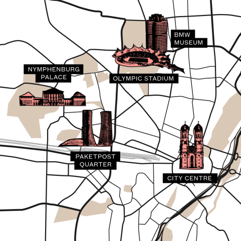The Paketpost Quarter is located near some of Munich’s most beautiful parks. Taxispark, nestled between the traditional Taxisgarten beer garden and Concordia Park, offers a natural retreat. Just a few minutes away lies the Nymphenburg Palace Park with its baroque gardens. The Hirschgarten, famous for its vast beer garden and wildlife enclosure, is also easily accessible.